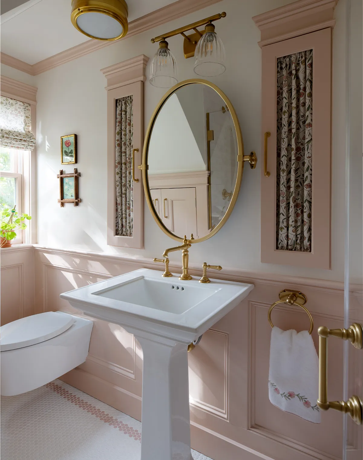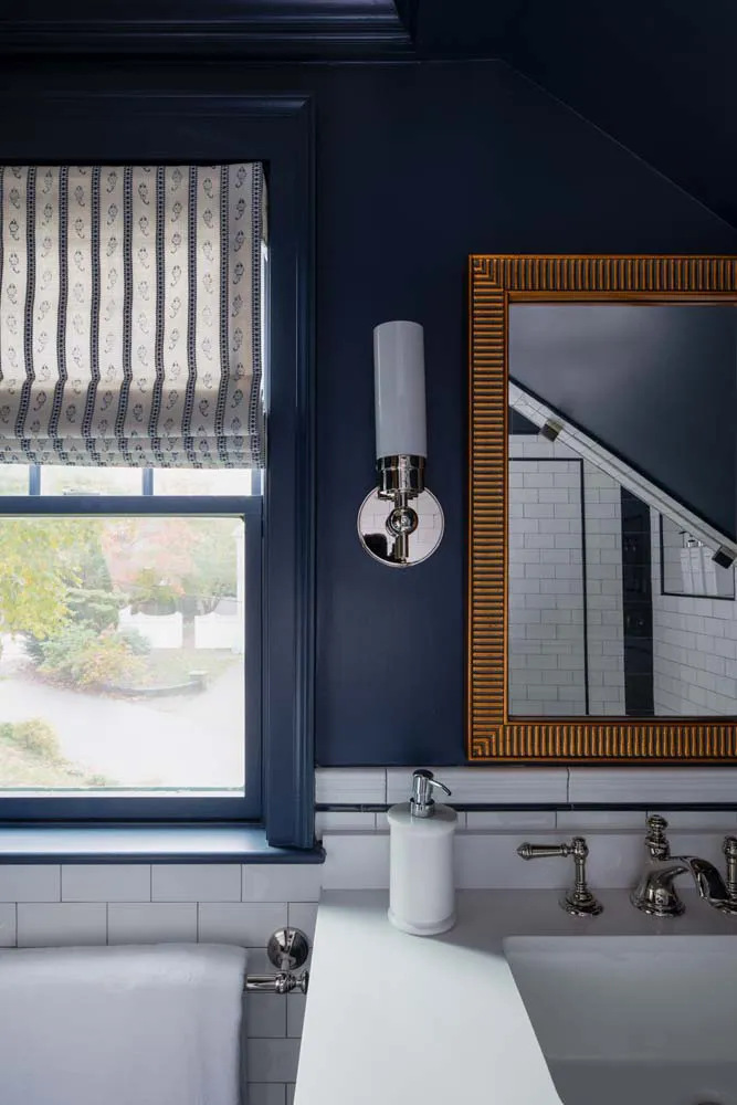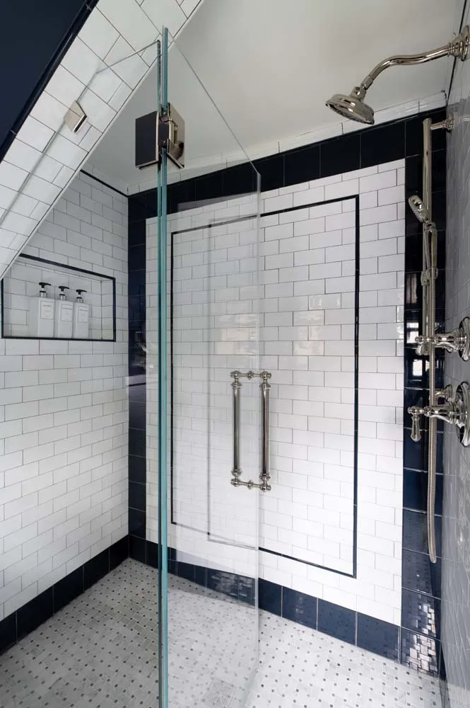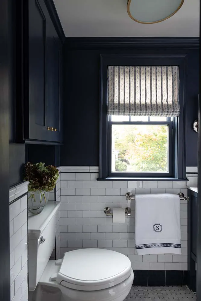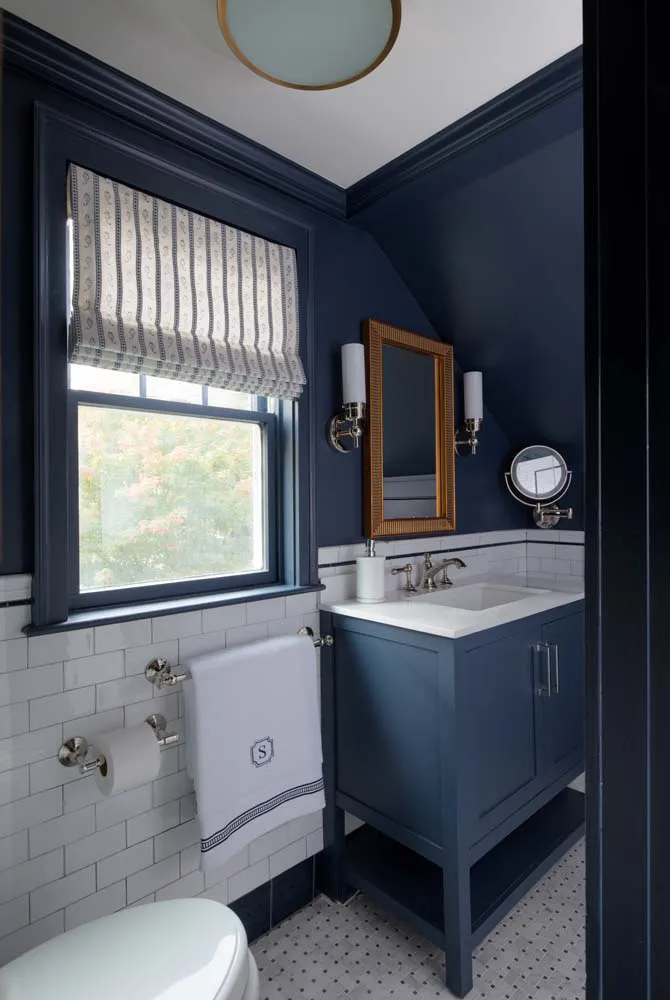 A refined interplay of color and craftsmanship defines these two Wellesley bathroom renovations.