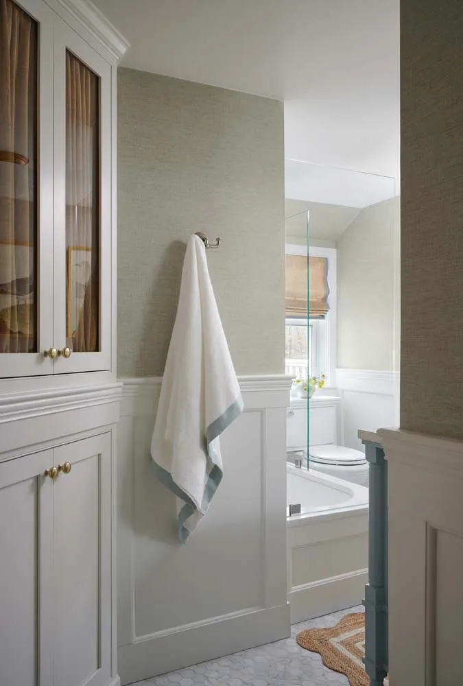Carefully selected tilework, classic wall paneling, and layered finishes bring depth and timeless character to the space. Every detail was executed with precision, creating a bathroom that feels both luxurious and built to last.